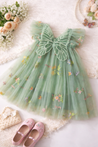 Girls’ Butterfly Wing Party Dress – Tulle Floral Embroidered Special Occasion Dress