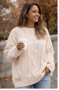 Trendy Queen Women’s Oversized Cable Knit Crewneck Sweater – Cozy Fall & Winter Essential