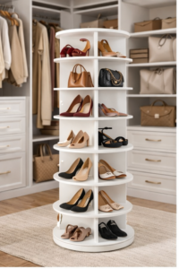 Maximize your storage space with this 7-tier rotating shoe rack tower, designed to keep your footwear and accessories neatly organized ...