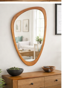 Asymmetrical Wooden Wall Mirror – Irregular Decorative Mirror for Bedroom, Living Room & Entryway (30″ x 19″)