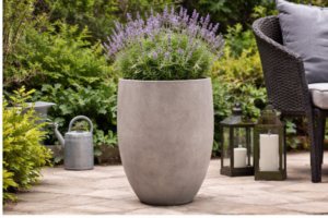 Kante 21.7″ Tall Weathered Concrete Planter – Modern Round Decorative Pot