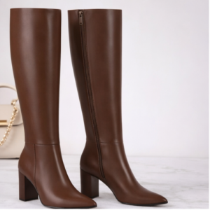 Women’s Knee-High Pointed Toe Boots with Chunky Heel and Side Zipper