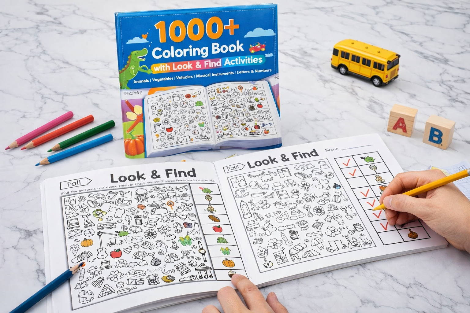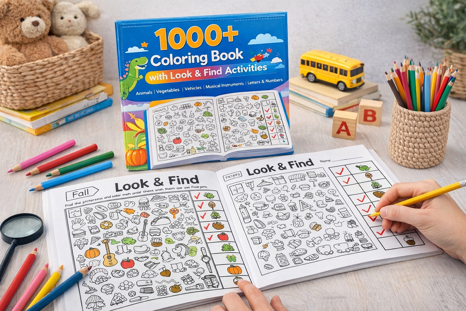 1000+ Coloring Book with Look & Find Activities – Educational Activity Book for Kids