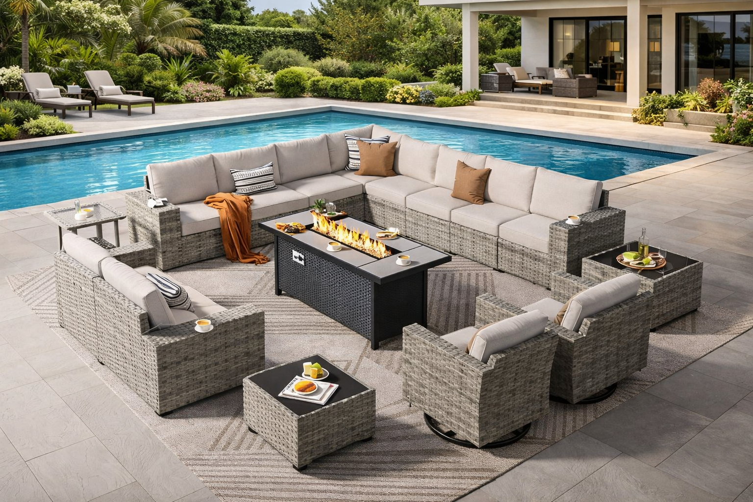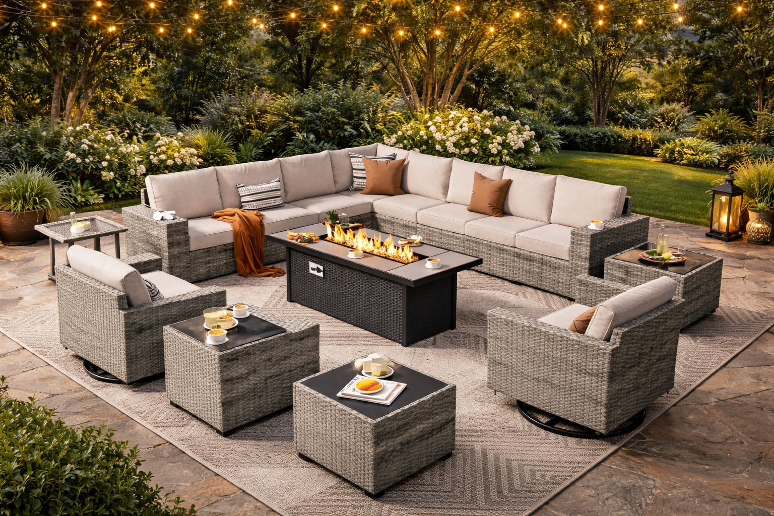 16-Piece Outdoor Wicker Patio Furniture Set with Fire Pit Table