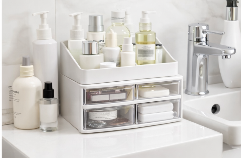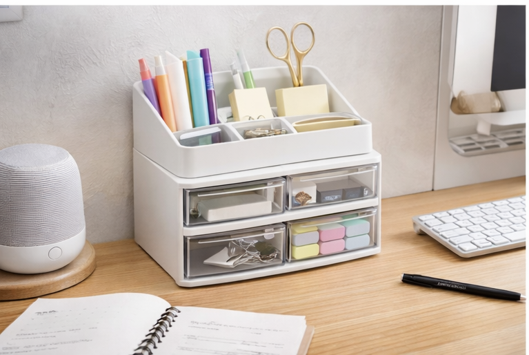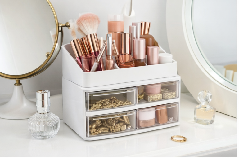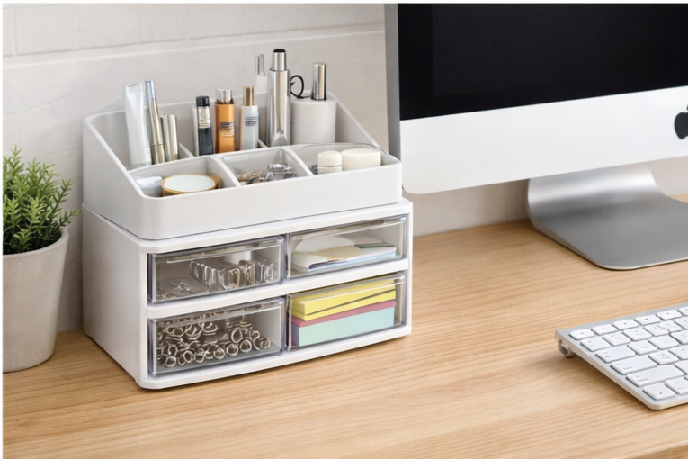1pc 2-in-1 Desktop Storage Box with Drawers – Multi-Drawer Organizer for Makeup, Skincare & Office Supplies