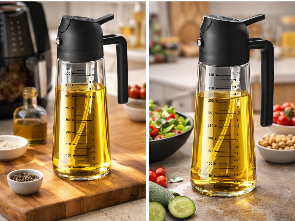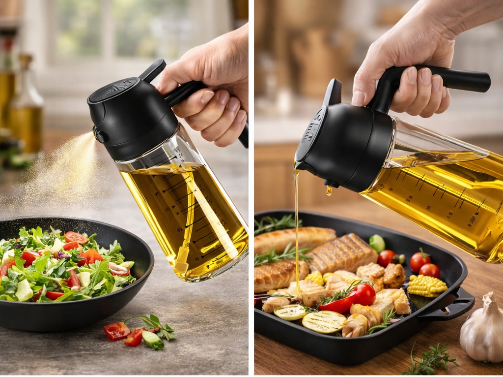 2-in-1 Glass Olive Oil Sprayer and Dispenser Bottle – 16 oz / 470 ml