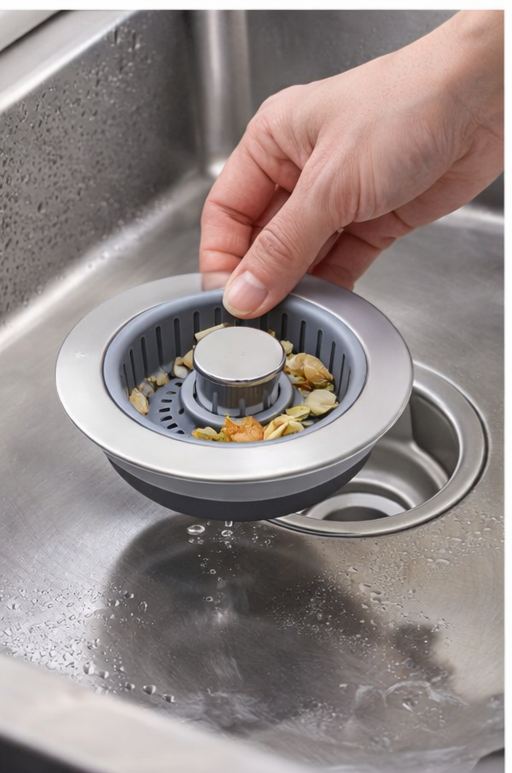 3-in-1 Kitchen Sink Drain Strainer and Stopper – Anti-Clog Design