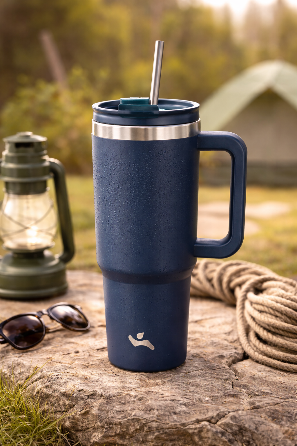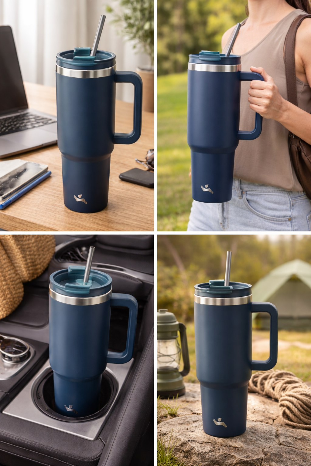 40 oz Insulated Stainless Steel Tumbler with Handle and Straws
