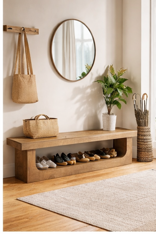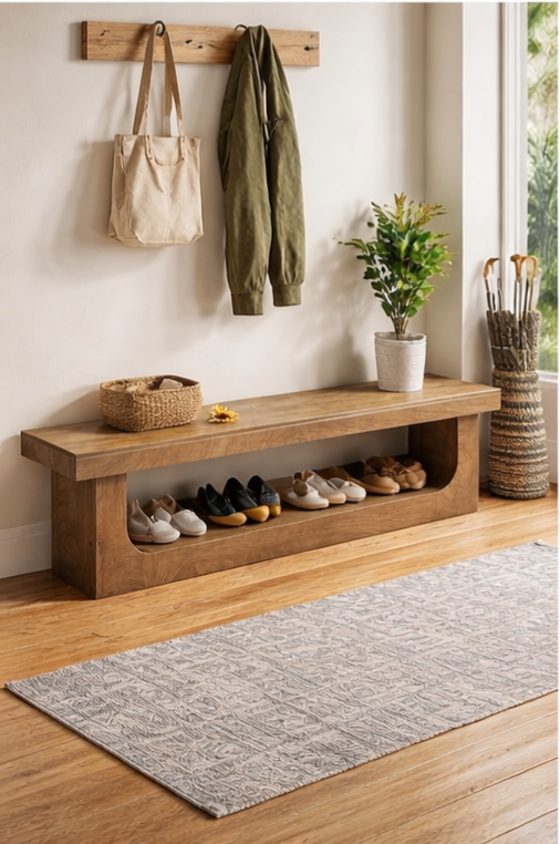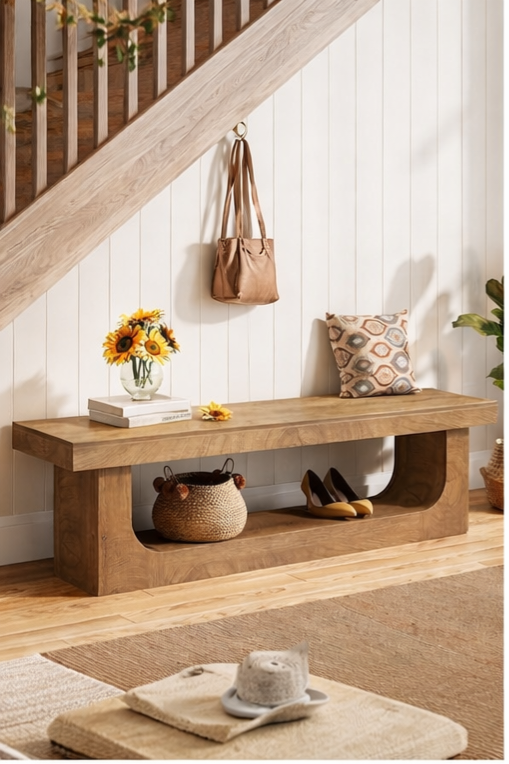 63-Inch Entryway Bench with Shoe Storage – Large 2-Tier Hallway & Foyer Bench