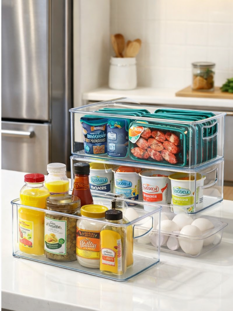 8 Pack Freezer Organizer Bins – Stackable Fridge & Refrigerator Storage Containers with Side Handles