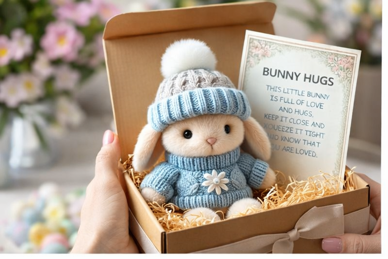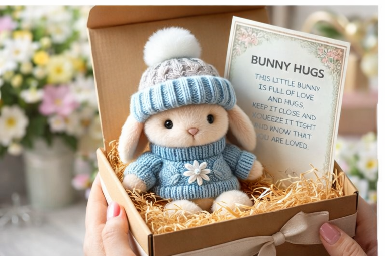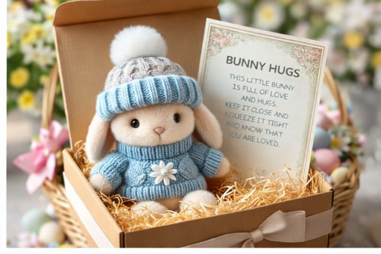 A Gift Full of Love – Handmade Mini Bunny Hugs Plush Gift Box