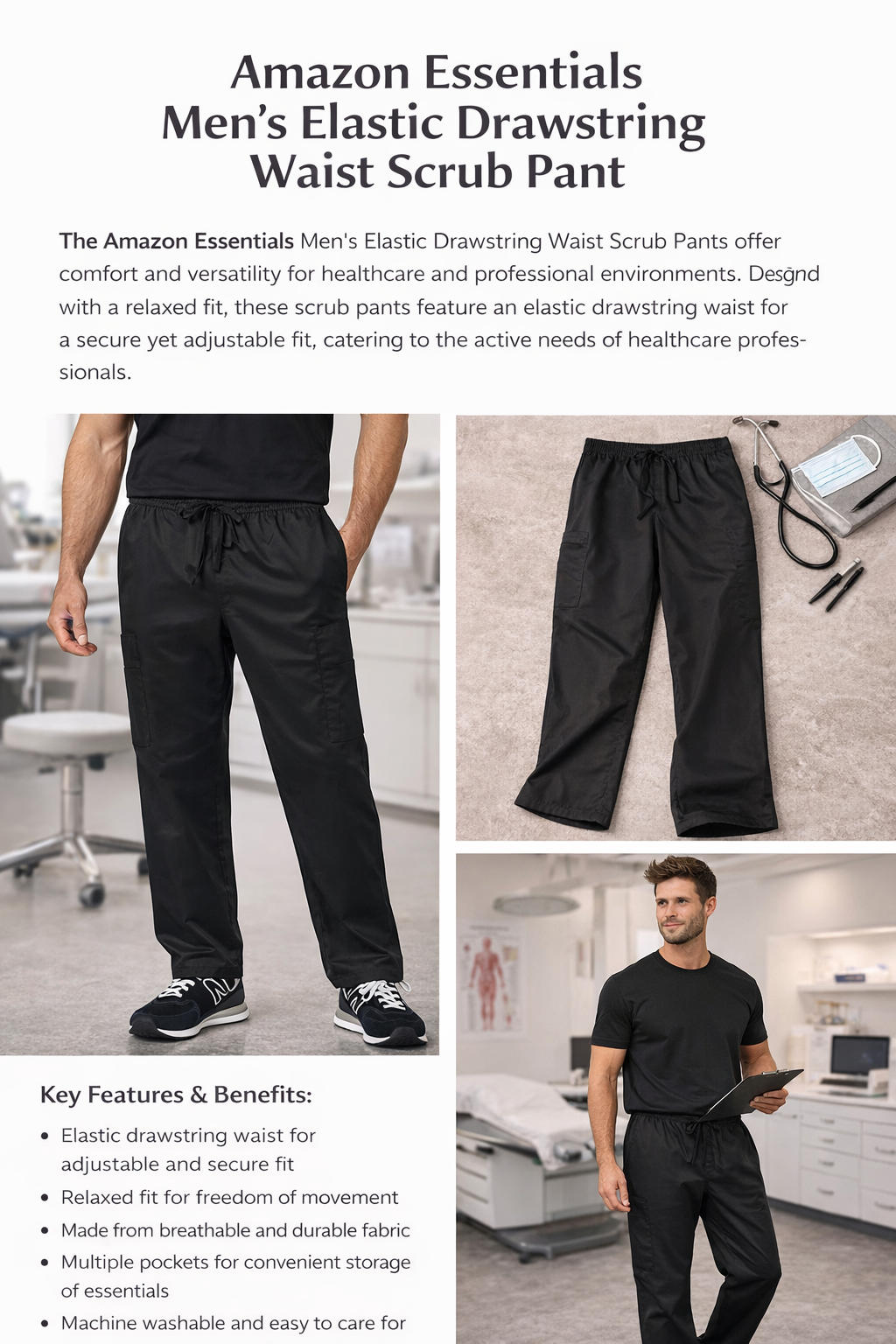 Amazon Essentials Men’s Elastic Drawstring Waist Scrub Pant