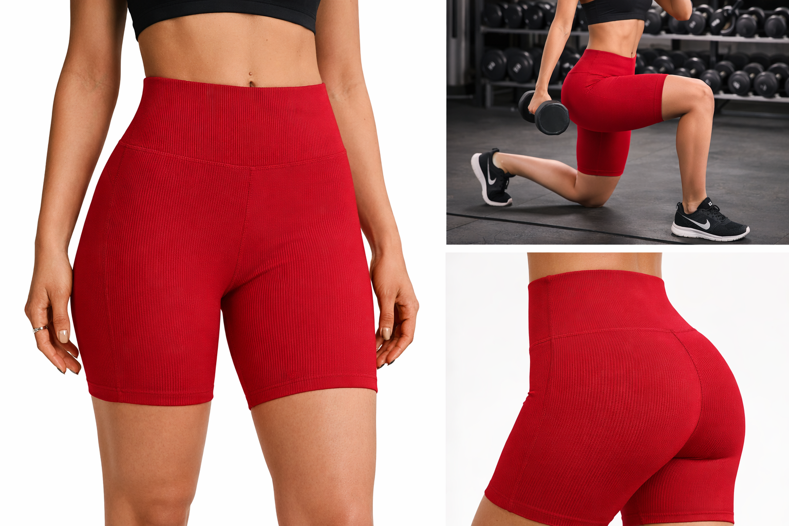 Aoysky Women’s High-Waisted Biker Shorts – 5” Ribbed Knit