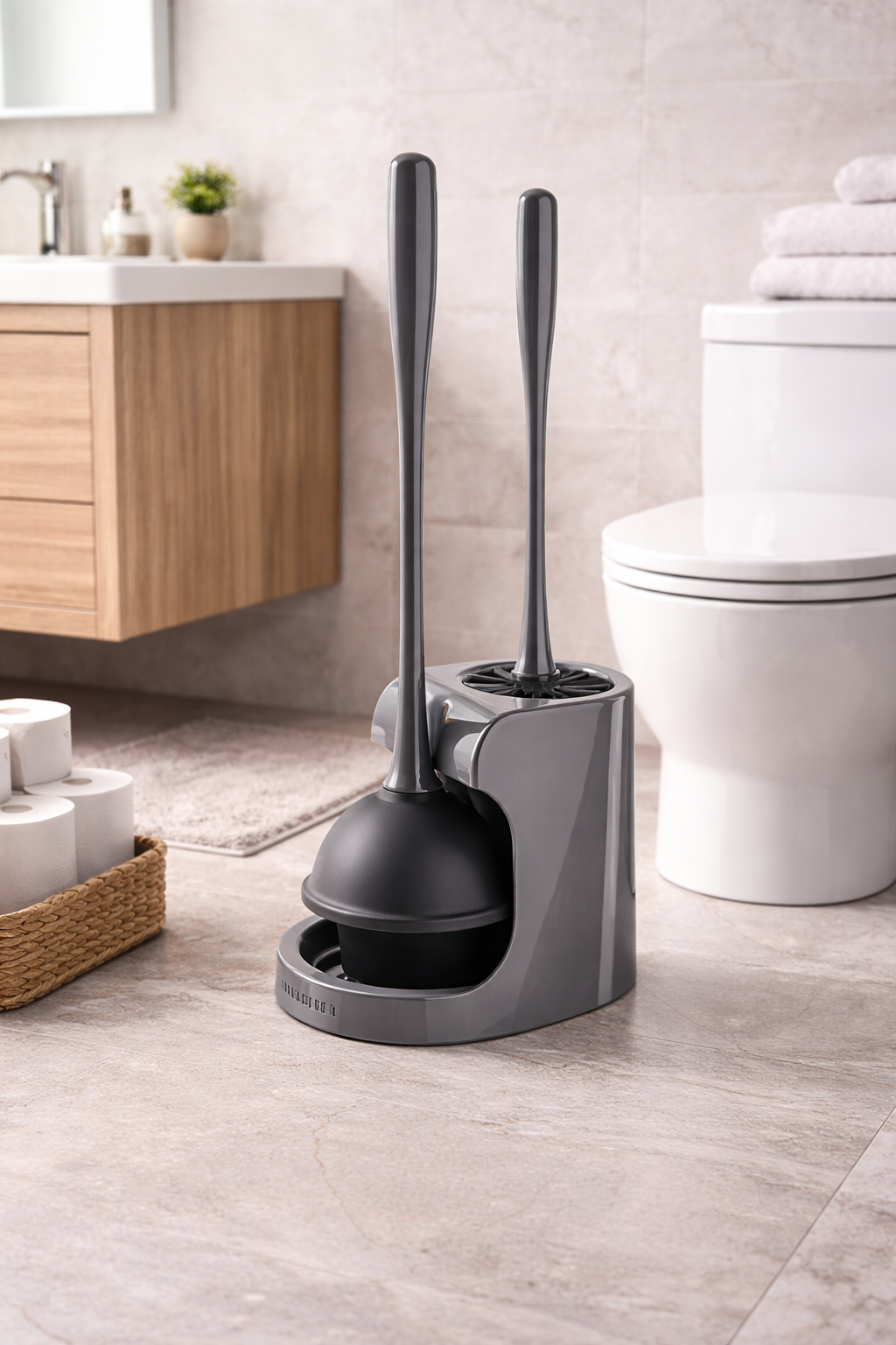 Clean Smarter – MR.SIGA Toilet Plunger & Bowl Brush Combo (Gray)