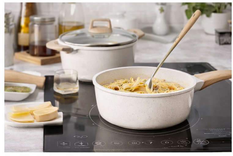 Complete Cooking Excellence – CAROTE 21-Piece Nonstick Cookware Set (White Granite)