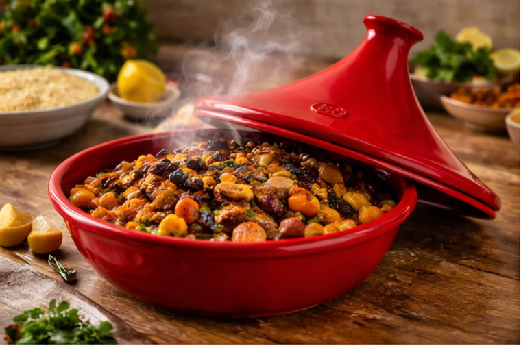 Emile Henry Burgundy Ceramic Tagine – 32.5 cm / 3 L