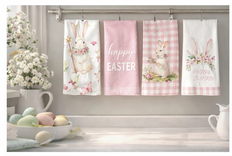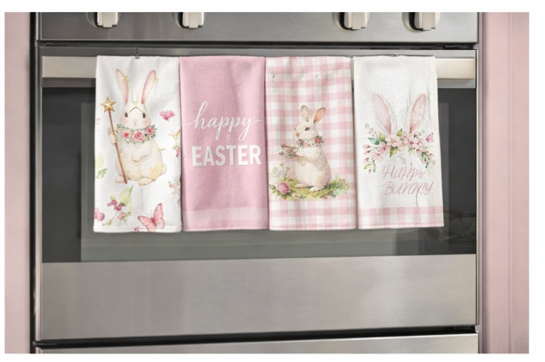 Fresh Spring Style – Easter Bunny Kitchen Towels Set (4 PCS)