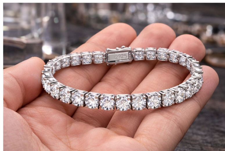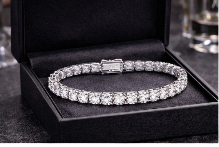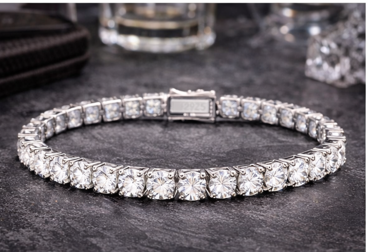 Gem’s Beauty Moissanite Tennis Bracelet – 925 Silver with 14K Gold Plating, D Color VVS1