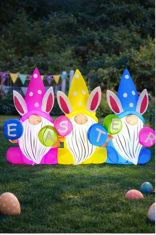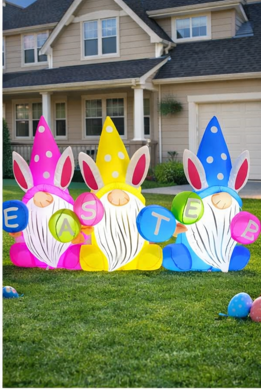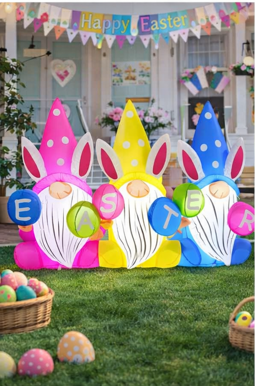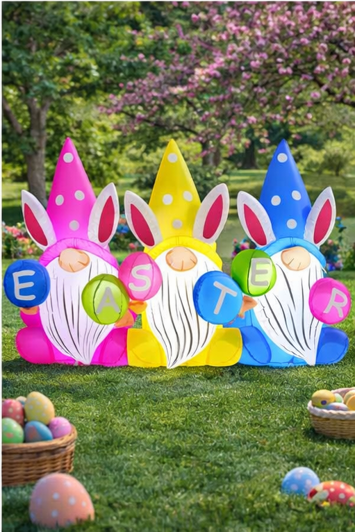 GOOSH 6.4 FT Easter Inflatable Gnomes Outdoor Decoration – Lighted Blow-Up Yard Décor with Built-in LEDs