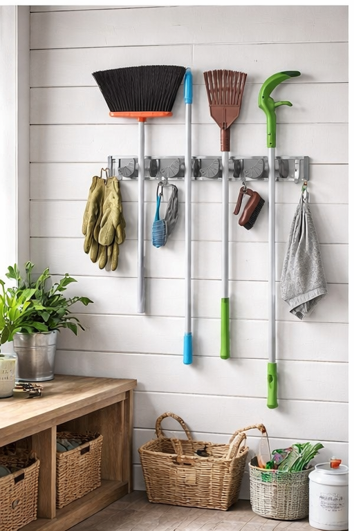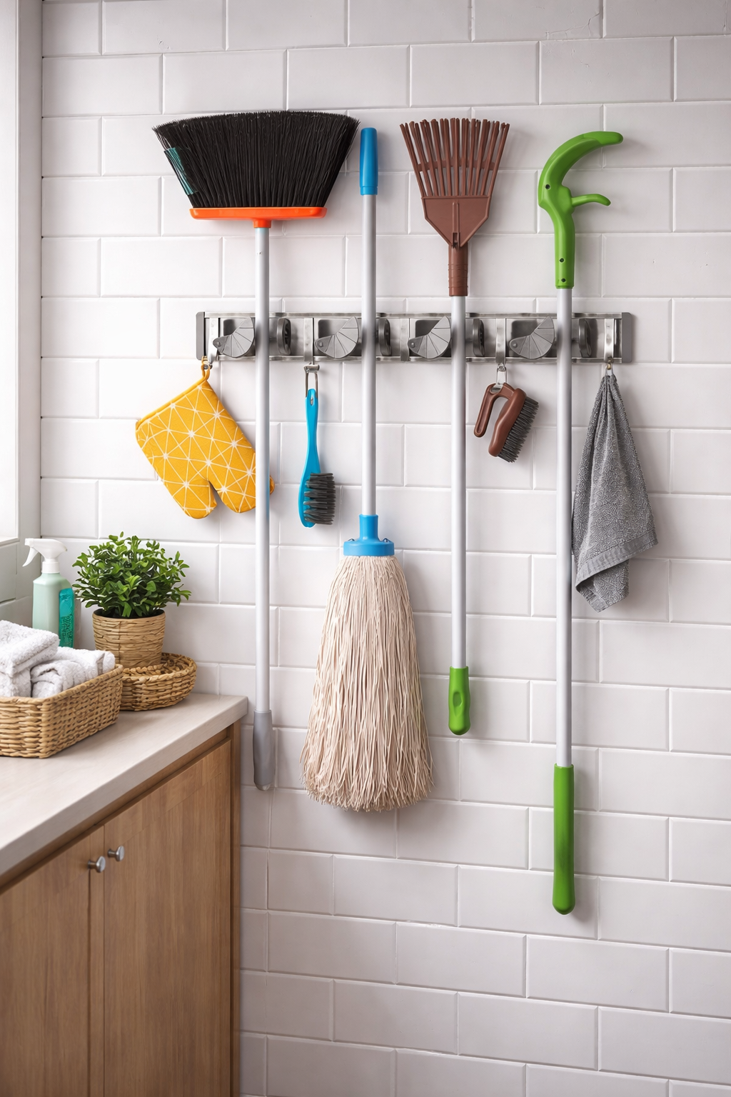 Holikme Wall-Mounted Mop & Broom Holder – Heavy-Duty Metal Organizer for Home Storage