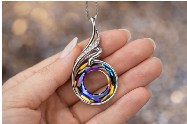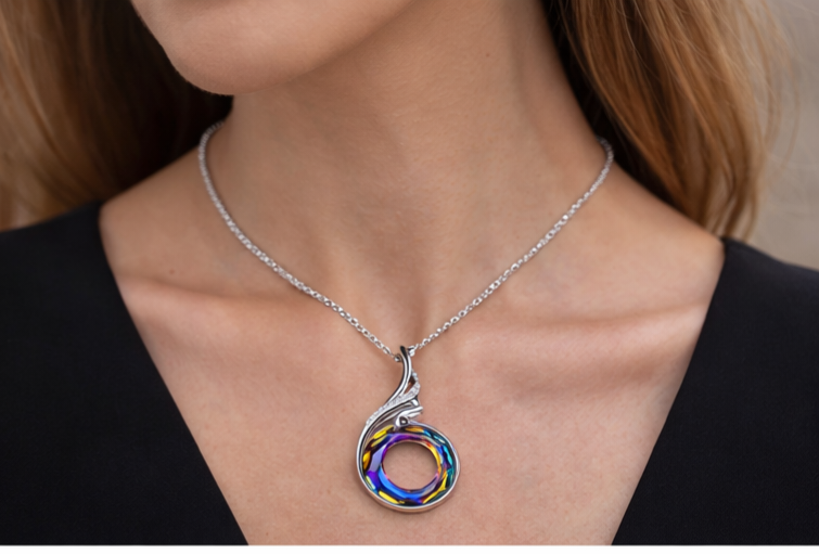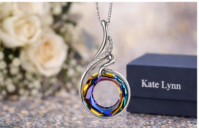 Kate Lynn “Rise From the Ashes” Phoenix Crystal Necklace – Silver Tone, 18”+2”