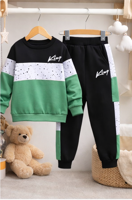 Kids “King” Tracksuit Set – Sweatshirt & Jogger Pants