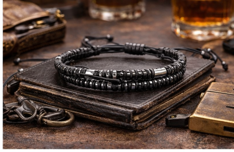 Men’s Leather Braided Morse Code Bracelet – Adjustable Symbolic Bracelet Gift