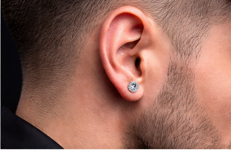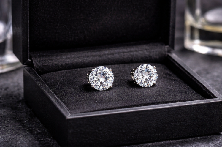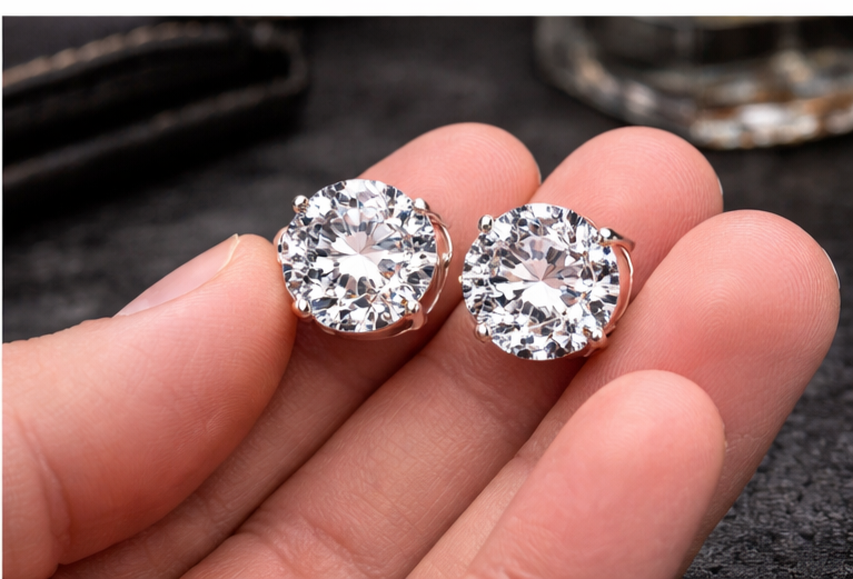 Moissanite Stud Earrings – Round Cut D Color VVS1, 925 Sterling Silver with 18K White Gold Plating