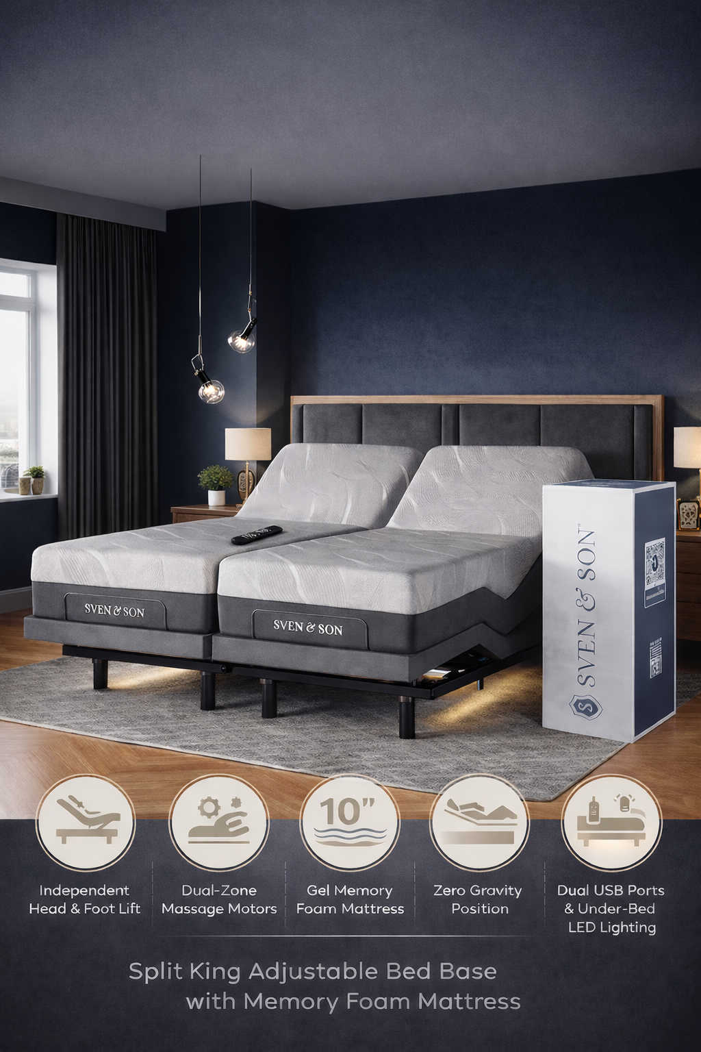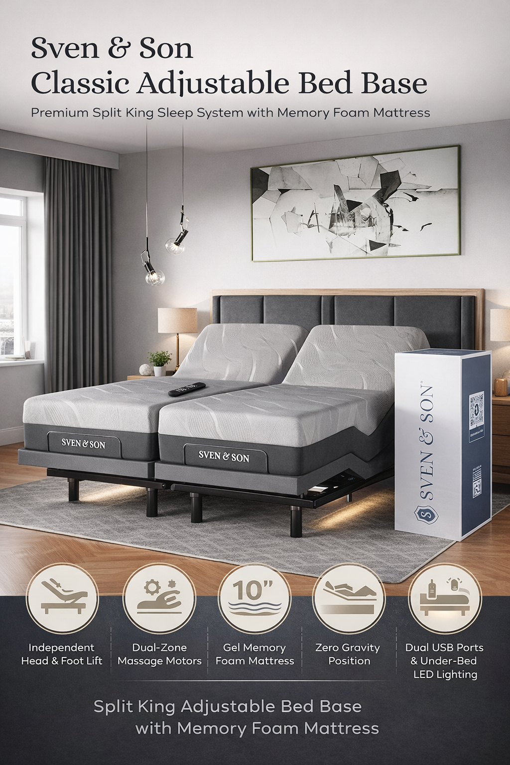 Sven & Son Classic Adjustable Bed Base – Split King Comfort with Smart Features