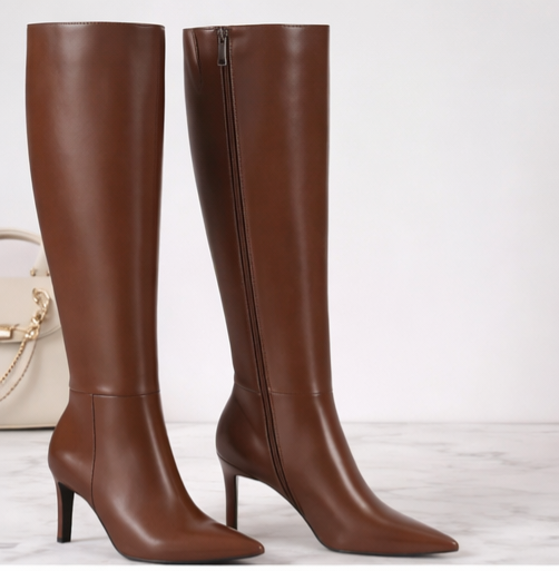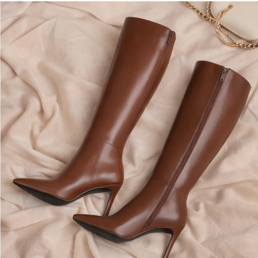Women’s Knee-High Pointed Toe Boots with Stiletto Heel and Side Zipper