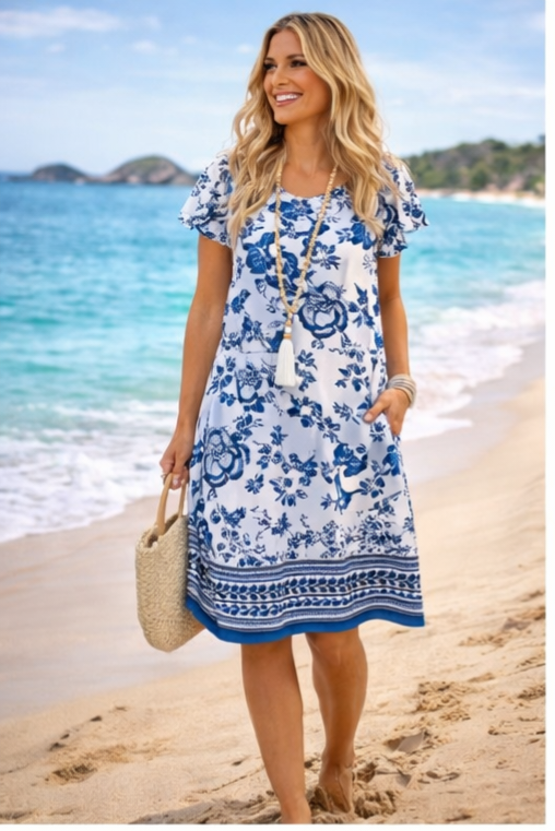 Women’s Summer Swing Dress – Ruffle Sleeve Loose Sundress with Pockets