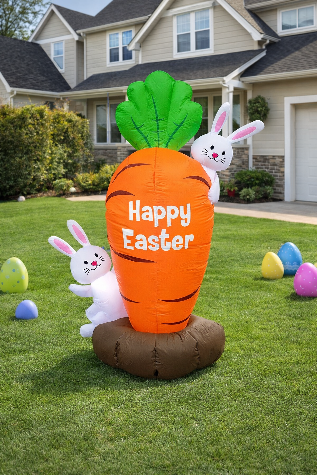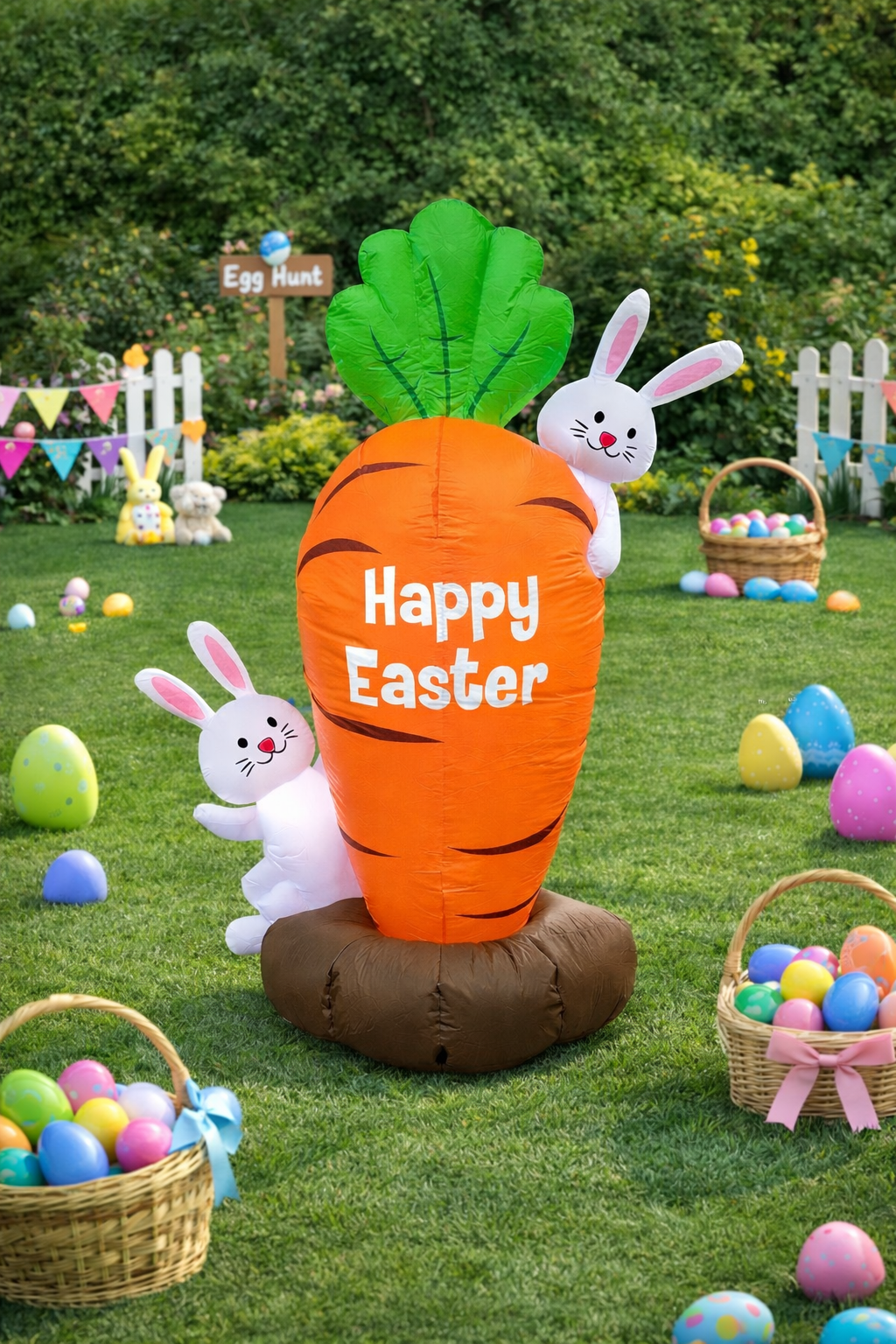Zcaukya 5FT Inflatable Easter Yard Decoration – LED Lighted Bunnies with Giant Carrot