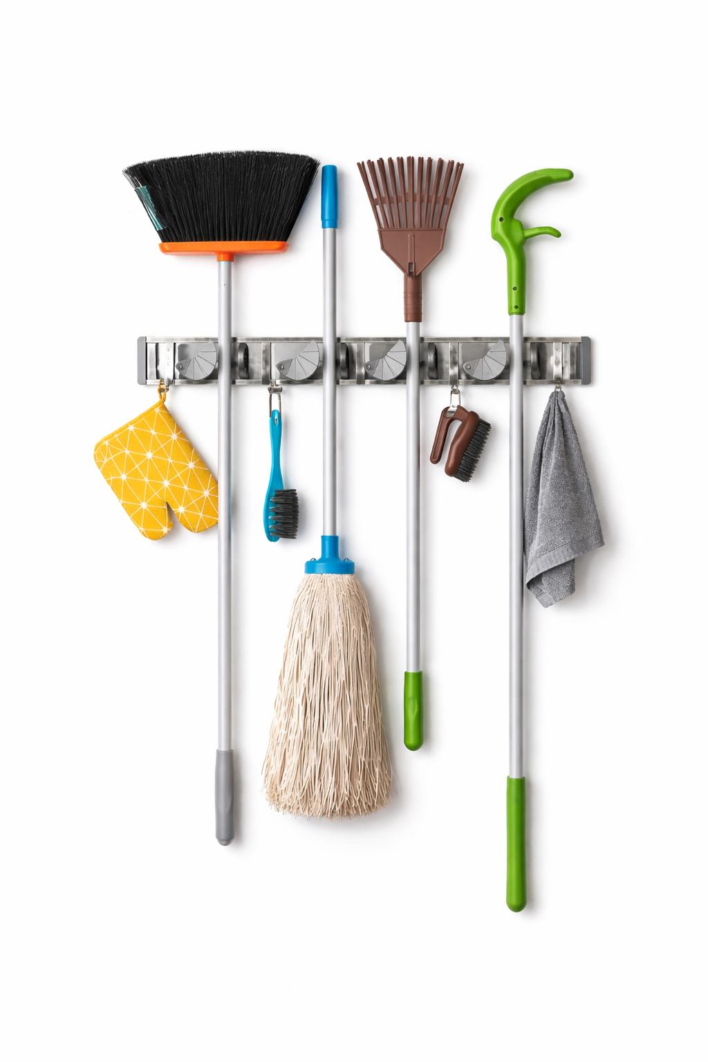 Holikme Wall-Mounted Mop & Broom Holder – Heavy-Duty Metal Organizer for Home Storage