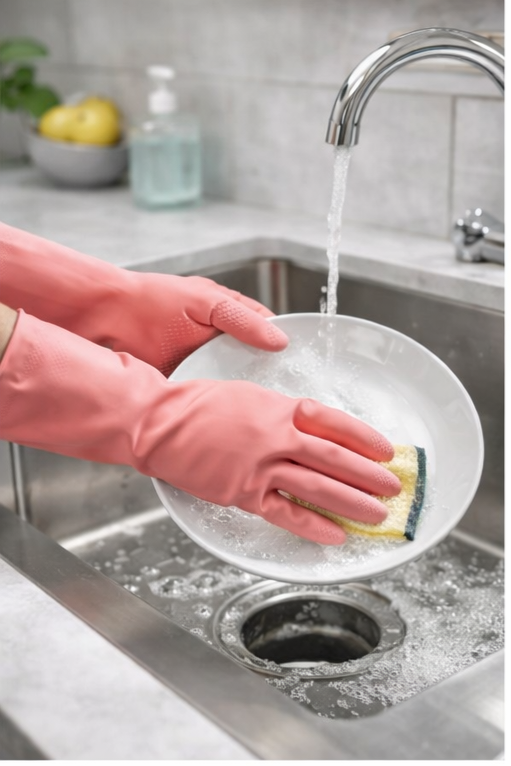 Reusable Rubber Cleaning Gloves for Dishwashing and Household Tasks – 4 Pairs